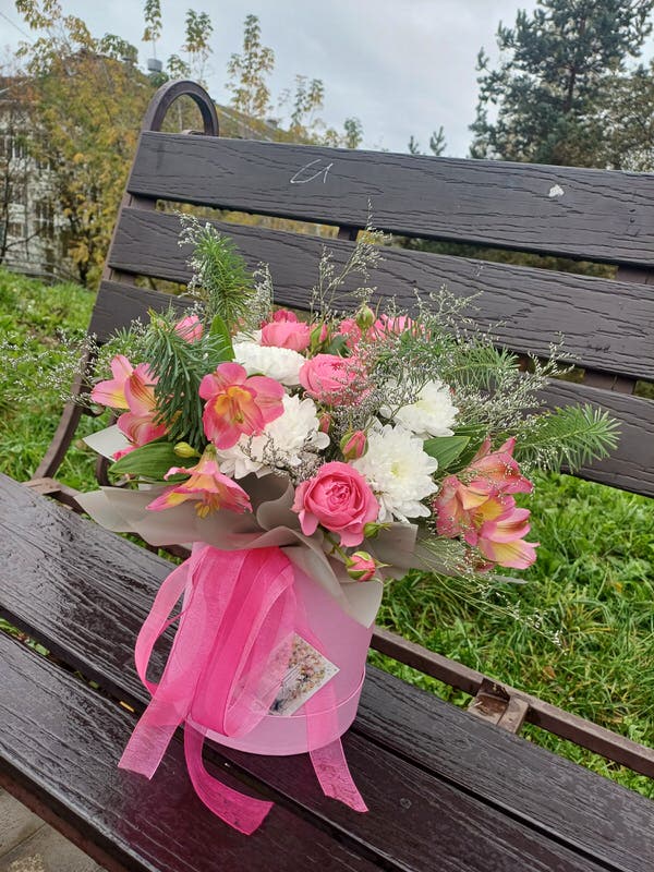 Букет из свежих цветов «Воздушная фантазия» — это удивительное единство оттенков, в котором каждый элемент служит дополнением к другим. Яркие цвета и различные текстуры создают завораживающий визуальный эффект, который привлекает взгляды и вызывает восхищение.